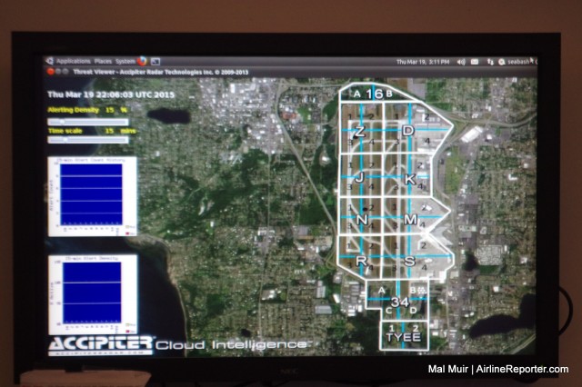 While the wildlife staff at SEA have access to the raw data available directly from the radar, the Airport Control Center (ACC) has access to some of the data as well. In the ACC is a display that helps to track flocks of birds that maybe loitering around the airport.