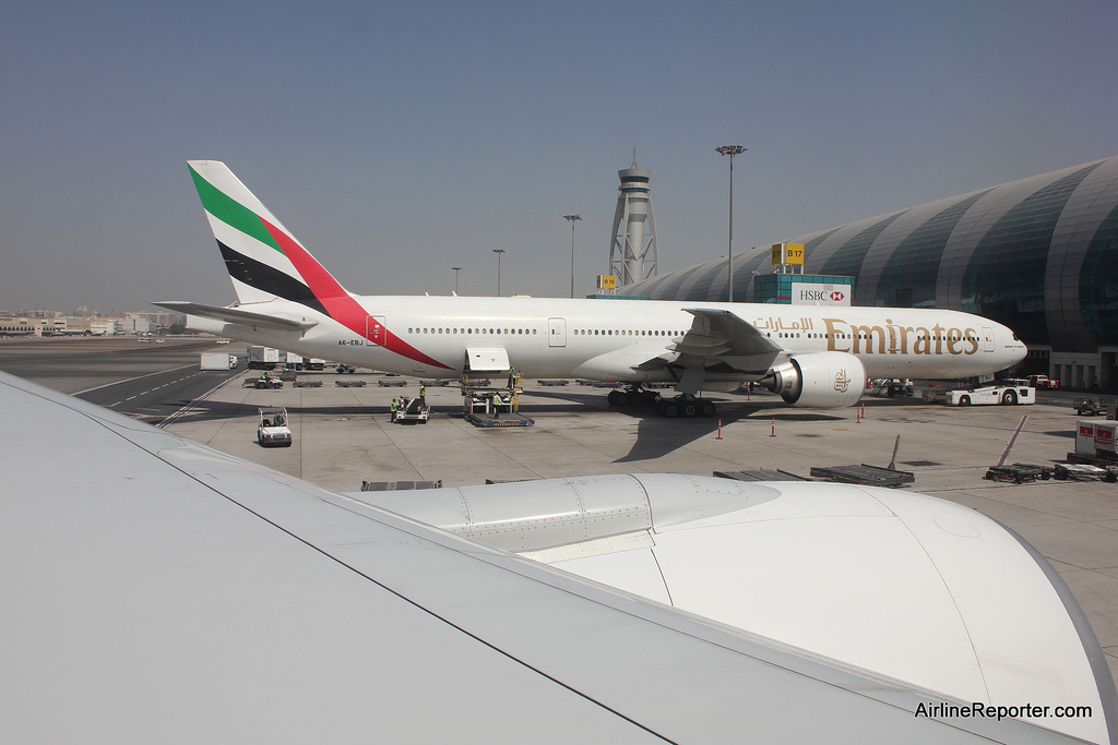 I couldn't get any good shots of my 777-200LR in Seattle or Dubai, so I am using this photo of another Emirates Boeing 777-300ER that I took from my aircraft.
