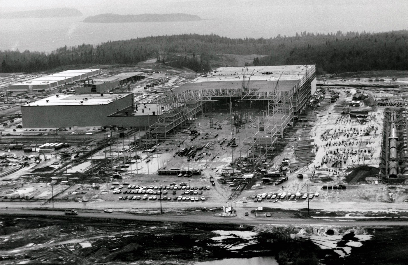 The company concluded that the final assembly facilities at Renton and Boeing Field were much too small and busy to accommodate a project of this nature. A number of locations were considered including San Francisco, Colorado, and Georgia; with the rural and difficult to access Everett area initially not even placing in the top five. Despite the political advantages of California at the time, and the lower-cost labor to be found in Colorado and Georgia, Everett held the edge in Allen’s heart and also his head. Boeing’s skilled Pacific Northwest aerospace workforce brought the expertise to get the job done.