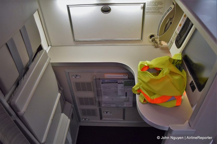 Nice report on a Very Nice airplane. The front galley is huge – for eight seats, so the meals ought to be great. The only downside that I can see is the 10x seating in cattle class; I just don’t like that 4x section in the middle – on any airplane. Great pix as well!! -C.