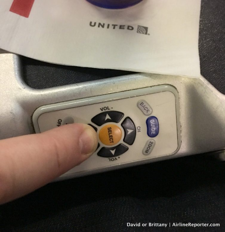 After our wonderful smelling towels were picked up (nicely done with that scent, United), Brittany started to look in the back of the magazine. I asked if she was looking for the food options and she said ’œyes.’ Another one of those moments for me. I let her know that they should come by and probably give us two choices that will sound super fancy, but boil down to chicken and non-chicken. I was right we both had the chicken (I think the non-chicken was some veggie curry thing).