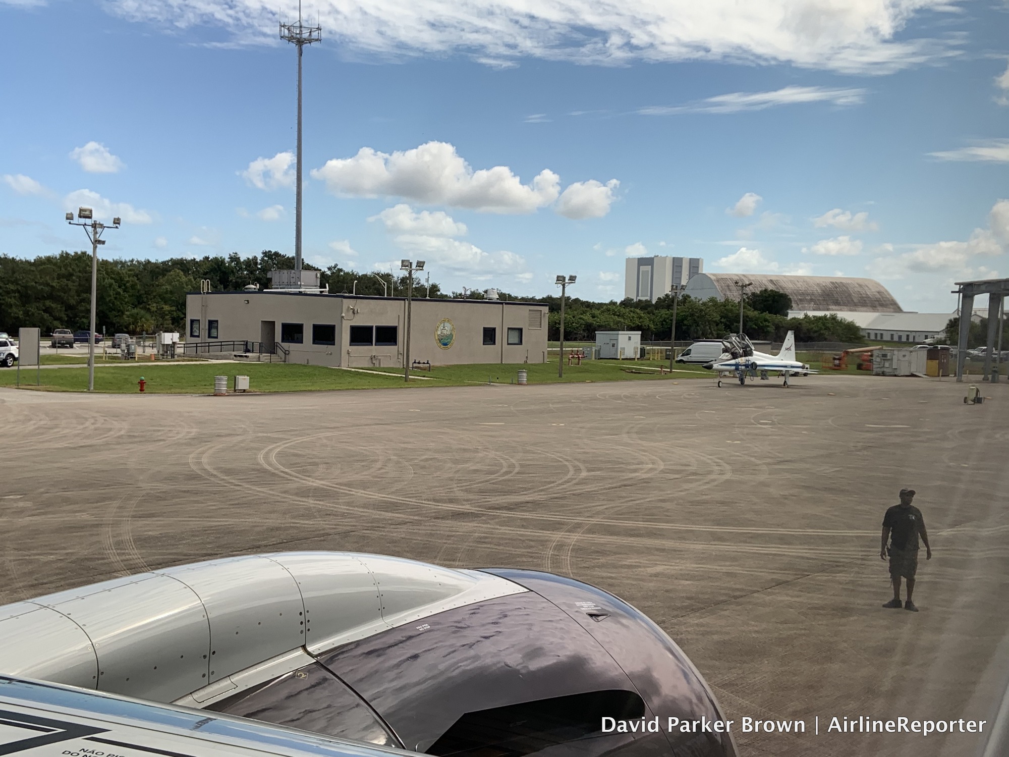 When our plane was parking, I could see a NASA T-38 parked on the ramp, which was a pretty nice welcome. Before we could board the bus, we had to go through a security check – a pretty legit one, at that. You see, not just anyone can land at this airport — we had to get special permission. You probably know this airport, since it is where the Space Shuttles would sometimes land when they were still in service. I felt pretty honored to be standing on sacred ground!