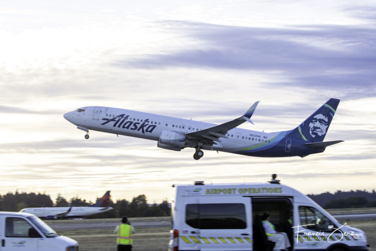 It felt like you could reach out and touch the winglets of the wide bodies as they taxied by (I didn’t try). We did get quite a few confused looks by flight crew, followed by many smiles and waves. Of course the ongoing joke throughout the day (at least it was funny to me) was calling out when an Alaska Boeing 737 or Embraer E-175 was taking off — there were lots and lots of those!