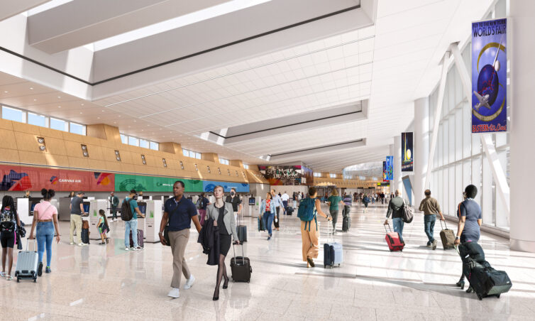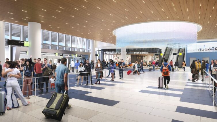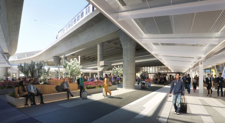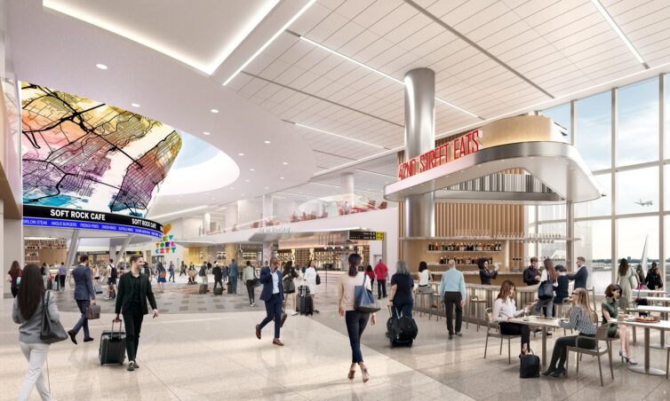 Here’s a rendering of the finished product, which includes a few of the sculptural elements that will enliven the passenger experience: