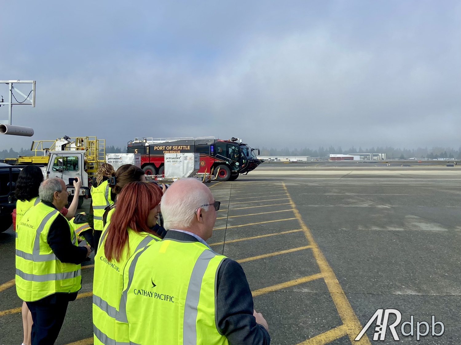 Over the years, I have covered quite a few inaugural flights into Seattle. They are always a hoot, but often there aren’t many surprises. Well, when Cathay Pacific Airlines did an inaugural flight to Seattle (SEA) from Hong Kong (HKG) on March 30, they did things a bit differently, and in a grand way. Not only did I get to experience the normal excitement of being on the ramp to greet the aircraft, but there was also a fun surprise at the gate; plus the airline held a grand gala event later in the evening.